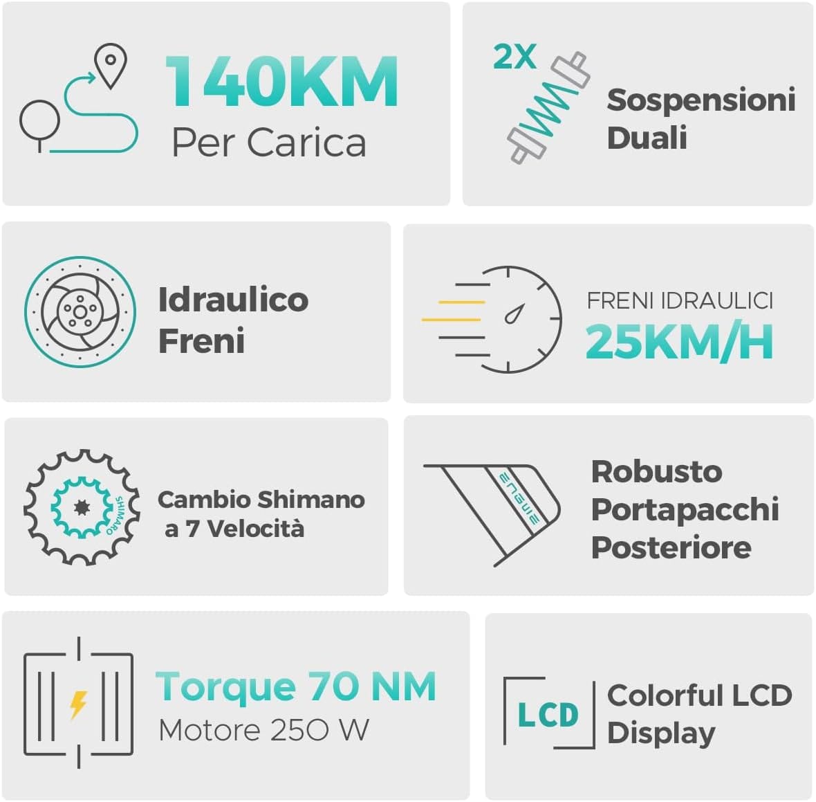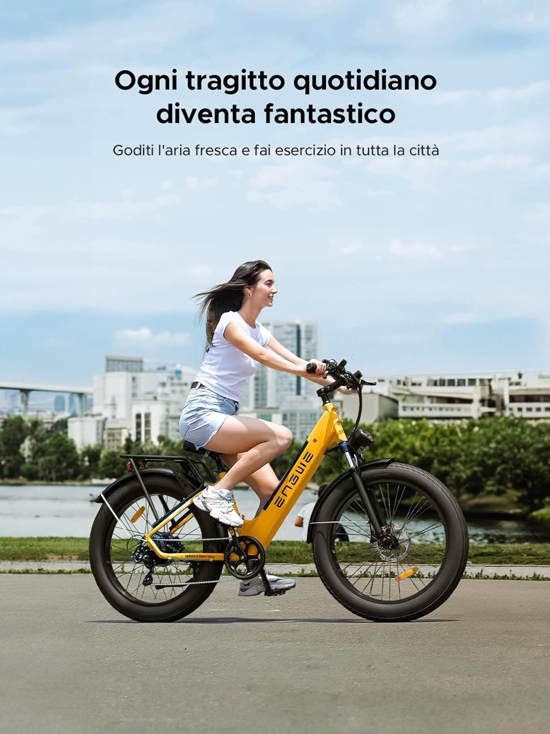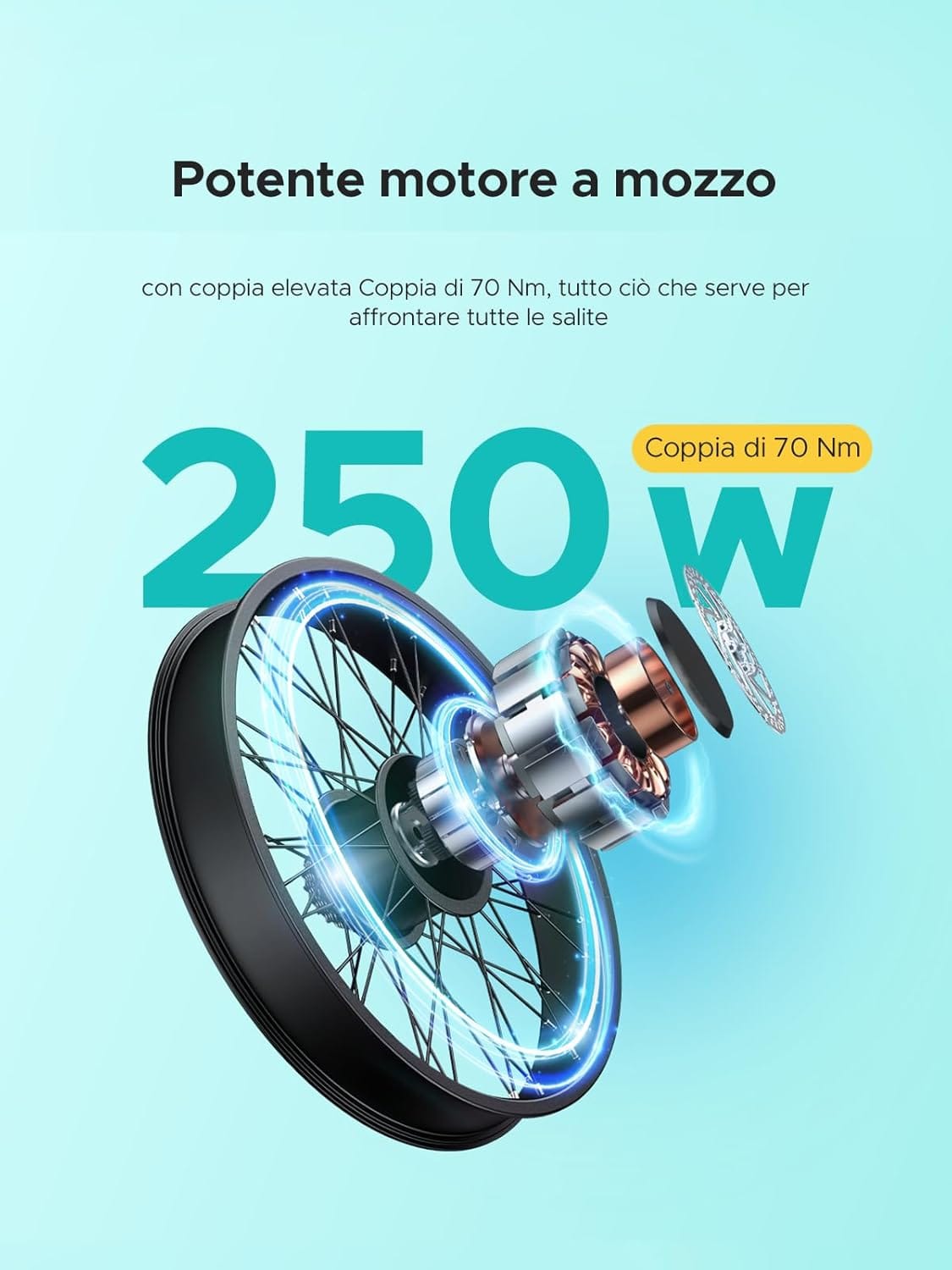 - La bicicletta elettrica ENGWE E26 è dotata di un motore brushless da 250 W, con una velocità massima di 25 km/h. È possibile godersi il piacere della pedalata senza bisogno di pedalare; se si preferisce pedalare, è possibile passare a 5 diverse marce.
