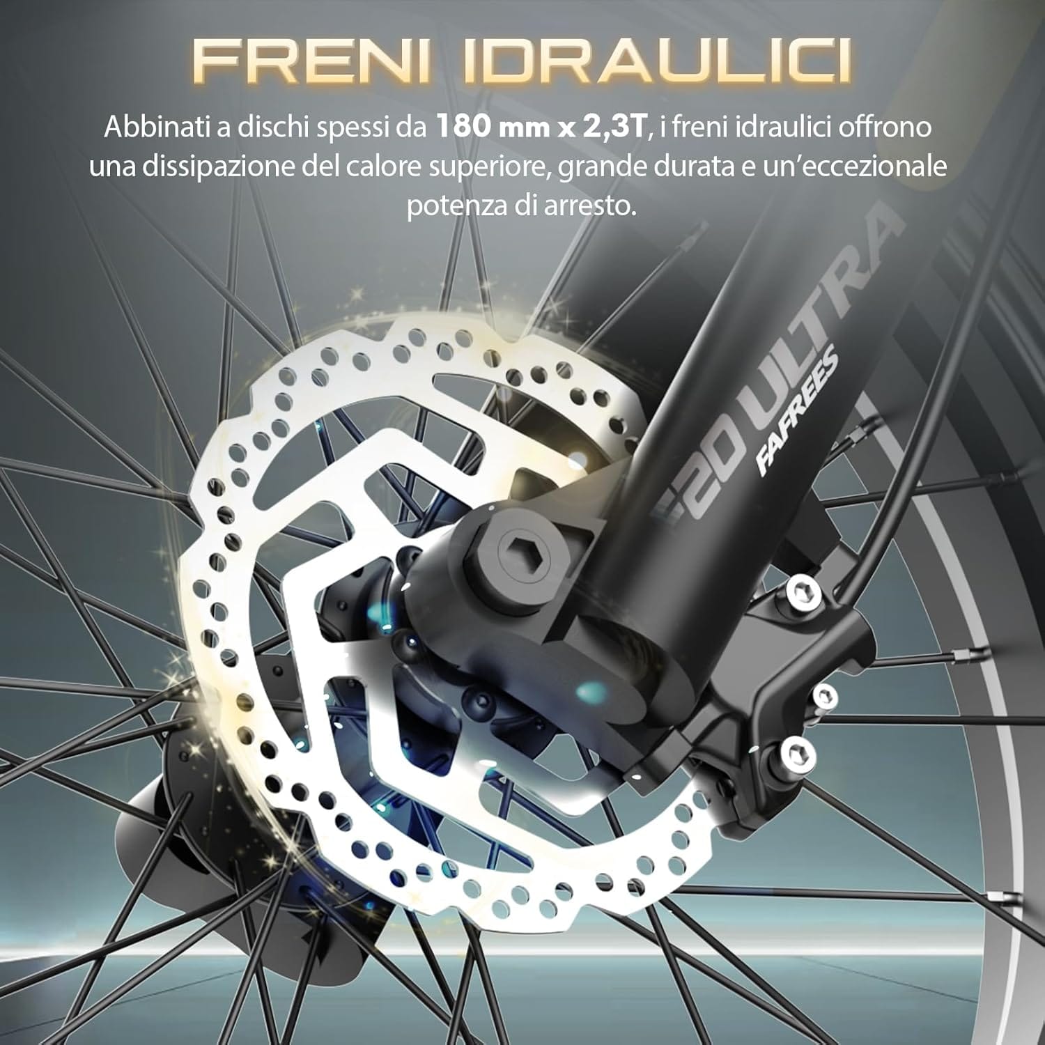 - 🚲La bici elettrica Fafrees F20 Ultra è dotata di un potente motore nel mozzo ad alta coppia. Garantisce un'accelerazione rapida e una capacità di salita superiore con una coppia di 79 Nm. Passa dalla modalità elettrica alla modalità PAS o alla modalità Manpower per una guida personalizzata.