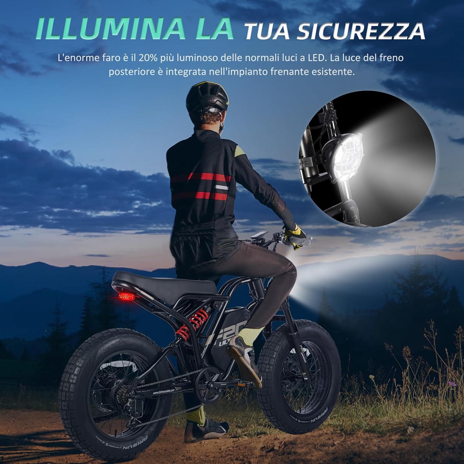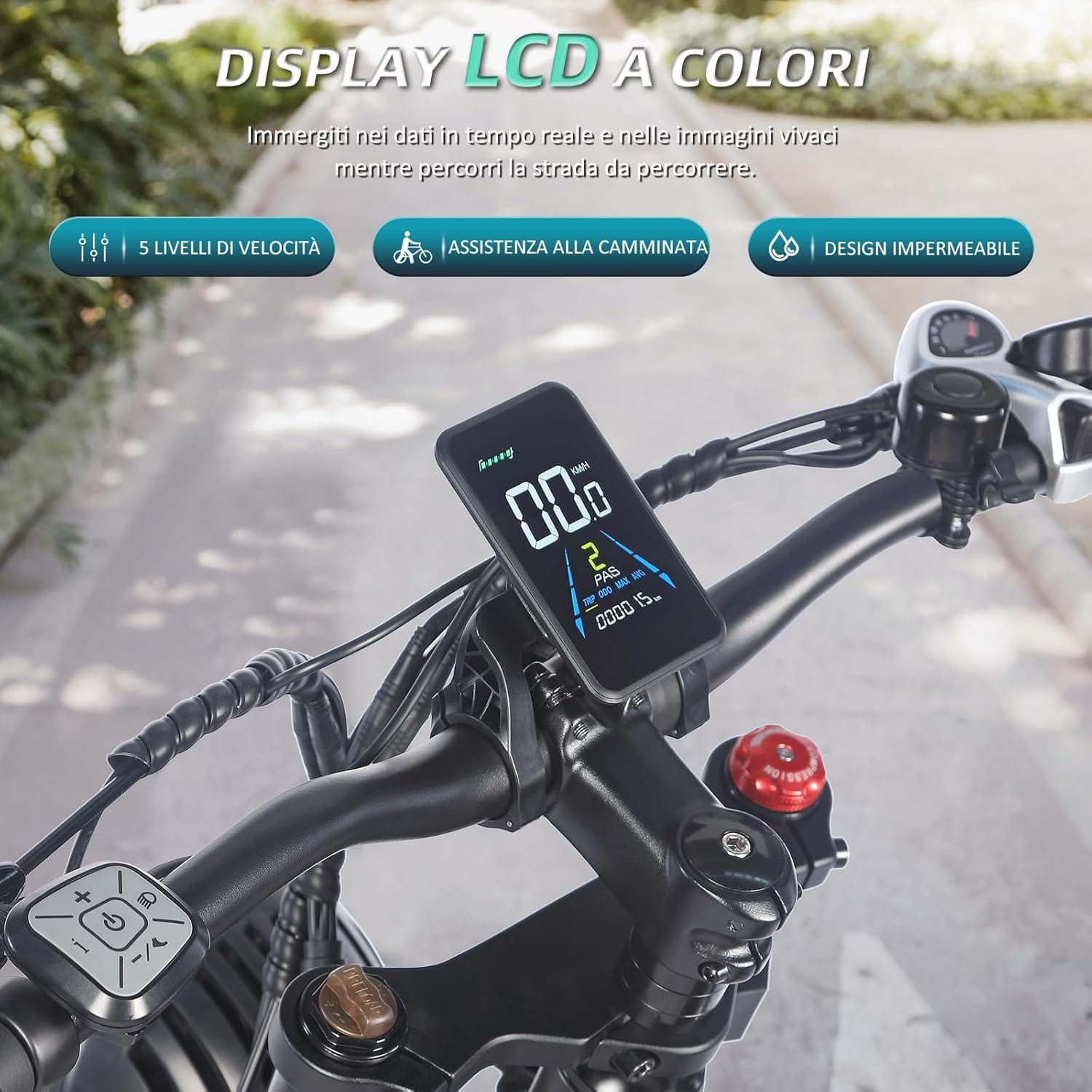 - 🚲Le gomme da 20 * 5,0 pollici di spessore della bici elettriche sono progettate per offrire prestazioni eccezionali in tutte le stagioni. Il design extra-largo consente di superare gli ostacoli senza sforzo e di assorbire urti e scossoni. Il display LCD ad alta risoluzione offre un'ampia gamma di funzioni con comandi semplici. Dalle misurazioni della velocità alla durata della batteria: rimanete aggiornati con un unico display.