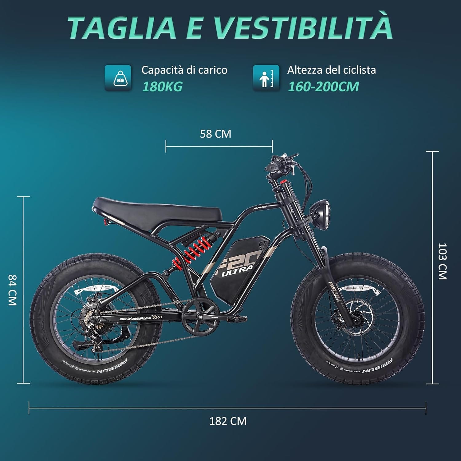 - 🚲La bici elettrica è dotata di una batteria da 48V 25Ah con celle LG 21700 avanzate e un'impressionante funzione di ricarica rapida da 3A per 8 ore. Migliorate le vostre corse con la tecnologia all'avanguardia e l'affidabilità della nostra batteria. Con una capacità considerevole, è possibile estendere le corse fino a 100 km con una singola carica.