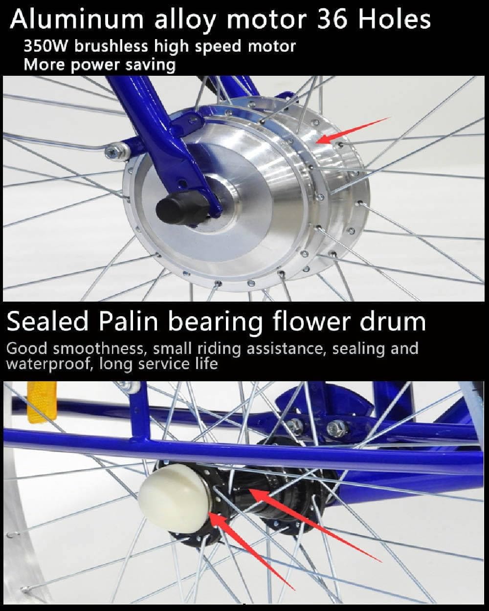 - Il tuo triciclo elettrico per adulti è molto comodo con un cestino posteriore durevole di grandi dimensioni che ti dà l'opportunità di trasportare qualsiasi tipo di carico come shopping, picnic, campeggio, ecc. senza compromettere il comfort e la visibilità.